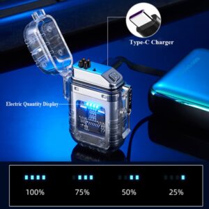 Dual Arc Lighter,Transparent Shell Waterproof Lighter,Windproof Lighter Electric Lighter with LED Flashlight,Rechargeable USB Lighter Flameless Plasma Lighter